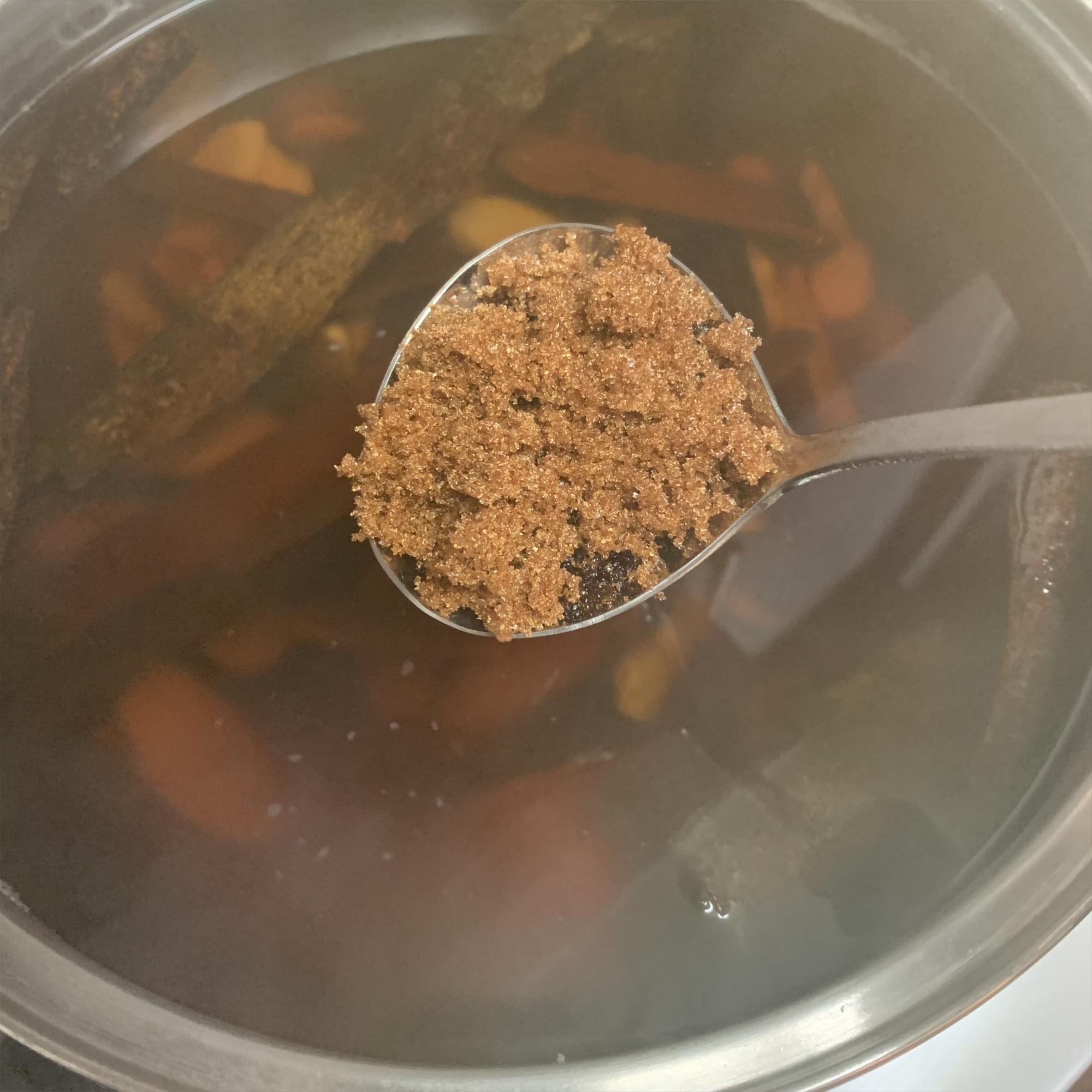 4) 불을 줄이고 색 농도와 단맛을 내기 위해 흑설탕 4컵 넣어줍니다.