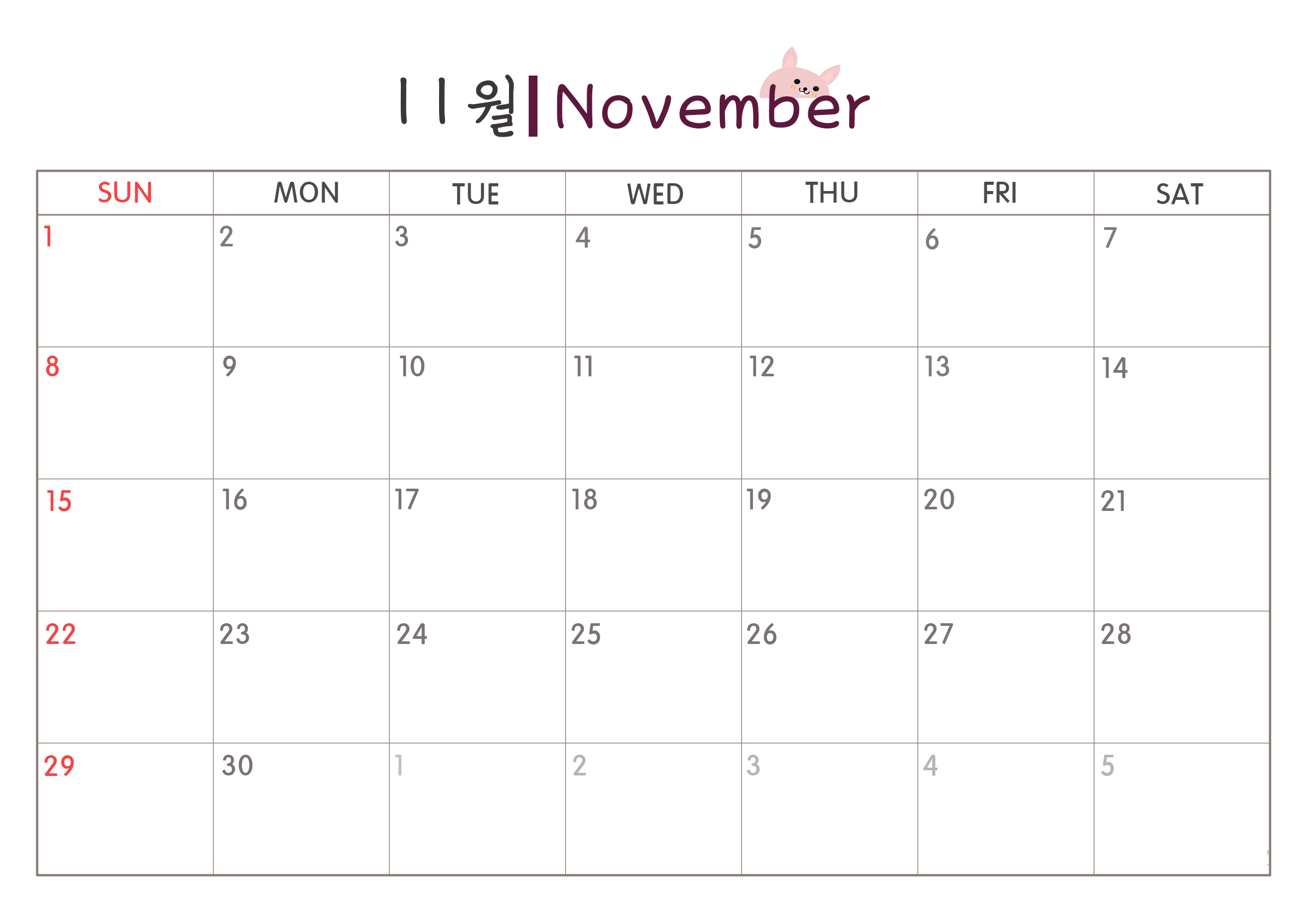 2020년 11월 양력달력(영문).jpg