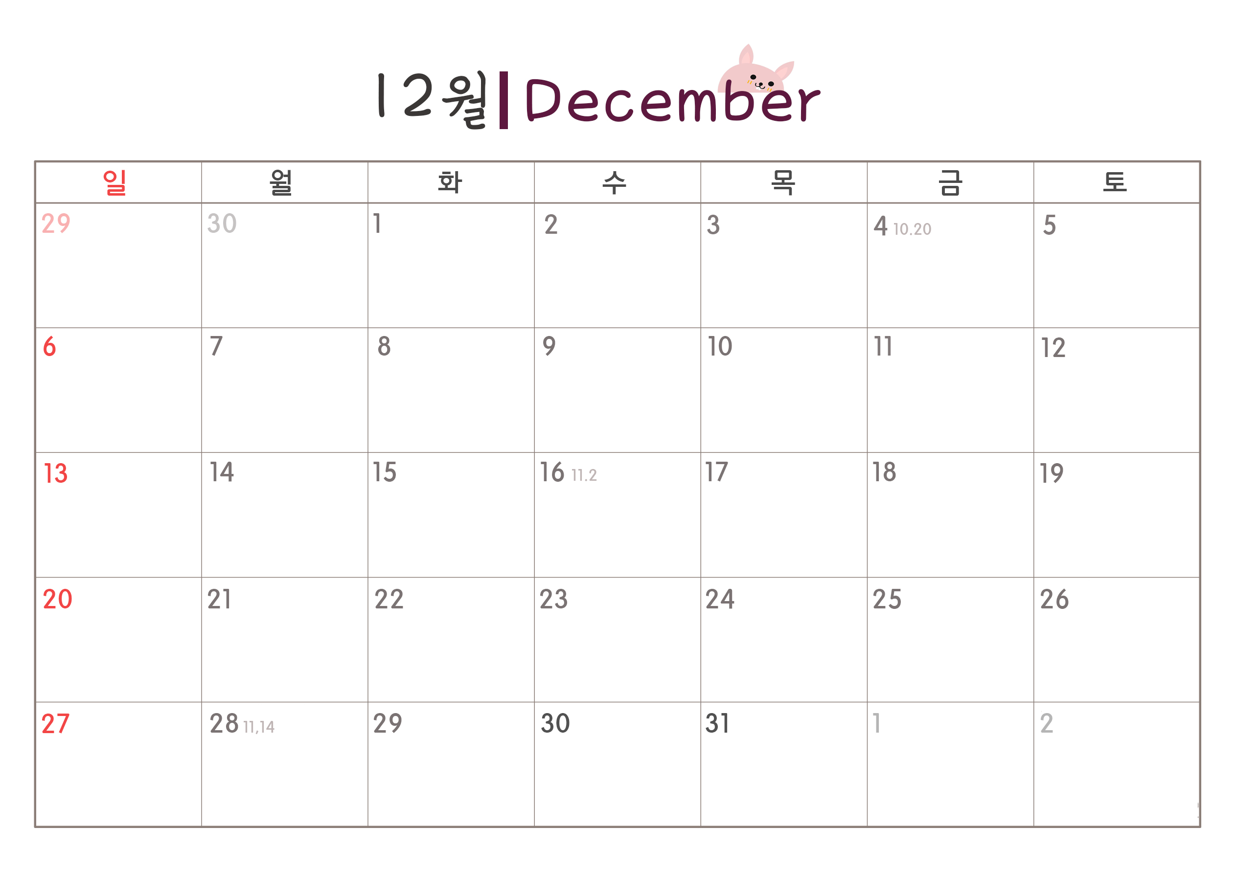 #2020년달력 #2020년12월 #2020년12월달력 #2020년12월양력