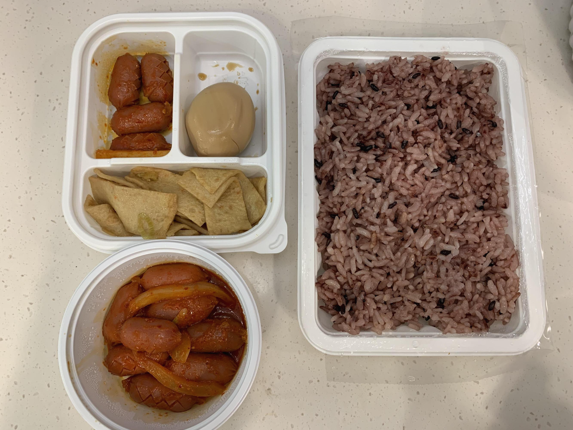 밥은 흰쌀밥이 아닌 뭔가 정성 들여 보이는 흑미밥