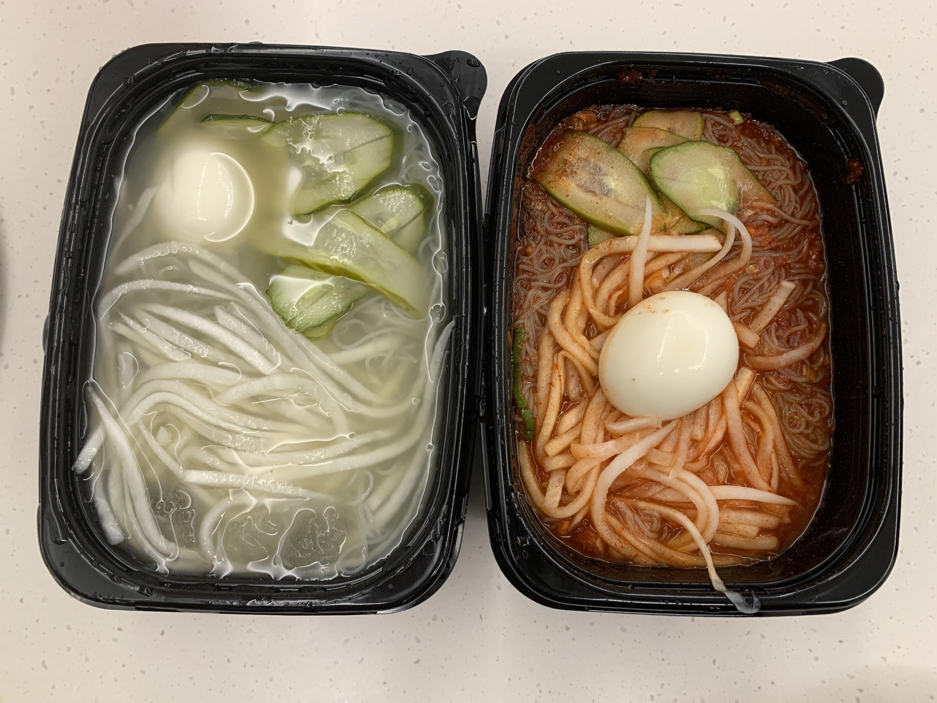 비빔냉면은 물냉면과 고기의 달달한 맛을