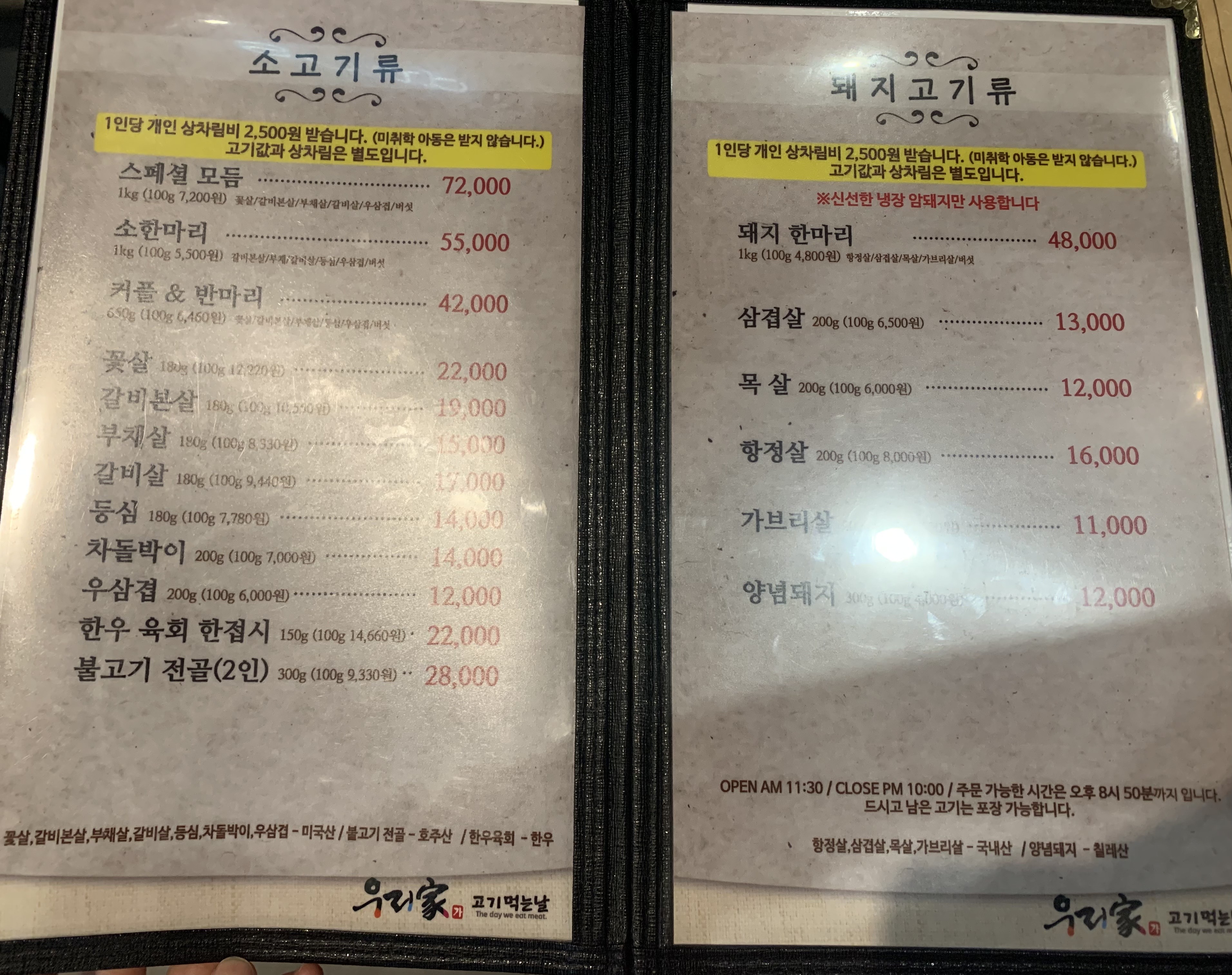 여기는 1인당 개인 상차림비 2,500원이 발생하는데